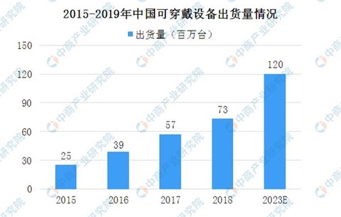 中国是可穿戴设备消费大国,2016年我国可穿戴设备出货量为3876万台,成为仅次于移动手机的第二大移动智能终端设备。2018年我国可穿戴设备出货量已经突破7000万台。预计到2023年,市场出货量将达到1.2亿台。