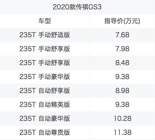 近日,答哥从广汽传祺官方获悉,2020款传祺GS3正式上市,新车共推出8款车型,动力系统搭载1.5T涡轮增压发动机,官方指导价格为7.68-11.38万元。新款车型增加了2款低配车型,将售价拉近8万元以内,进一步降低了购买门槛。